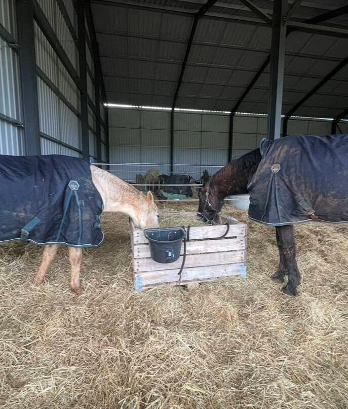 Les rations sont distribuées par nos soins, dans le respect du rythme et des besoins de chaque cheval.